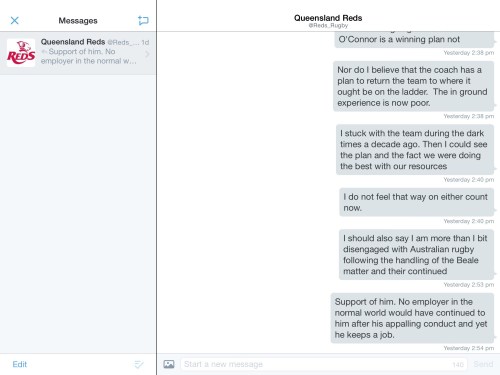Yesterday I received a Direct Message on twitter from the Queensland Red’s twitter account that read as follows:
